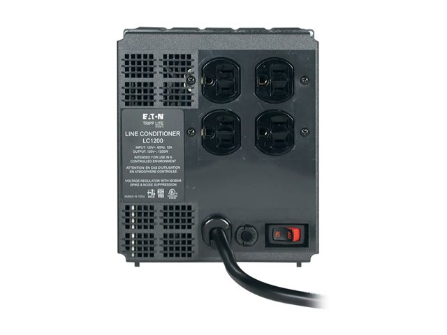 El acondicionador de línea LC 1200 de Tripp Lite proporciona regulación automática del voltaje para computadoras, copiadoras, impresoras láser, máquinas de fax y otros equipos electrónicos sensibles. La regulación de voltaje de 1.200 vatios corrige las caídas de tensión y los sobrevoltajes (87 a 140 voltios) de vuelta al nivel de 120 voltios de CA, adecuado para computadoras. La unidad tiene 4 salidas, un cordón de 6 pies (1.8 m), LEDs de diagnóstico y supresión de sobretensión y de ruido incorporada. Sus bancos de filtros aislados eliminan la interferencia entre los equipos conectados.