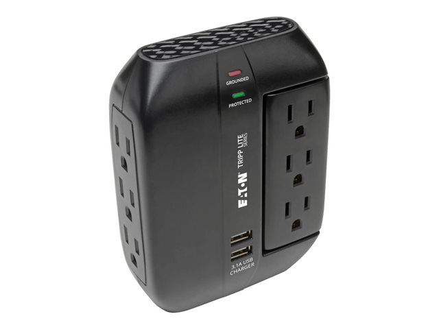 An integrated 15A circuit breaker protects all outlets and automatically cuts power to outlets if protection circuit is incapacitated, preventing equipment damage and indicating replacement is required. Diagnostic LEDs confirm your wall outlet is properly grounded and your connected equipment is protected. The 6-outlet swivel surge protector conforms to current UL 1449 3rd Edition and cUL (Canada) safety standards. Its high-impact black plastic housing is designed to endure in demanding environments.