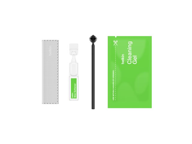 El kit de limpieza de Belkin para AirPods elimina de forma segura la acumulación de cerumen y restaura el rendimiento acústico sin dañar los auriculares. Recupera el audio de alta calidad y disfruta plenamente de tus AirPods Gen 1-3 durante más tiempo.
