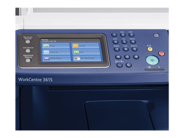 La intuitiva pantalla táctil a color de 4,3 pulgadas (109 mm) de la WorkCentre 3615 le permite programar su próximo trabajo mientras hay otro en curso.